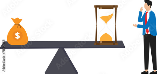 Vektorová ilustrace velkých přesýpacích hodin a malých lidí pracujících na noteboocích, žena se potápí v písku uvnitř hodinového skla. Time management, termín, time is out koncepty pro web banner, webové stránky atd.