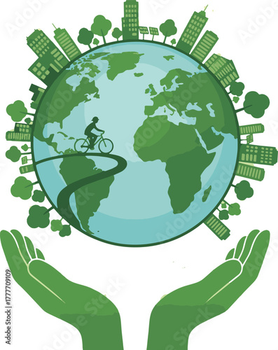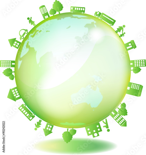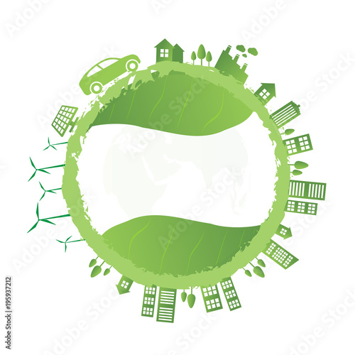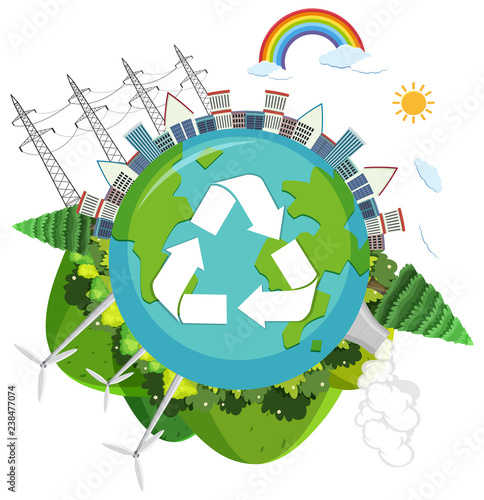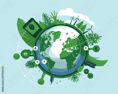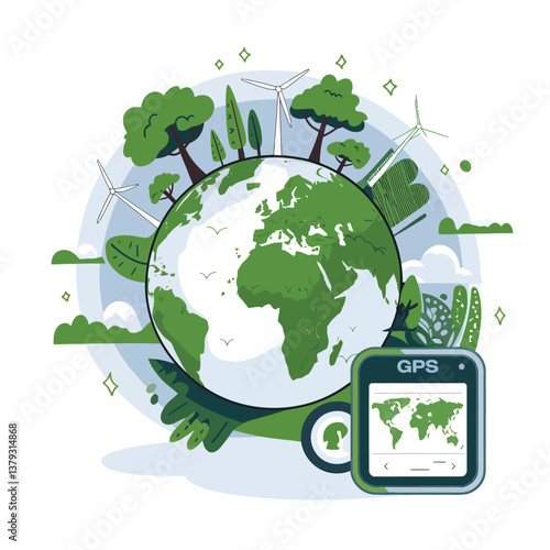 Vektorová ilustrace konceptu Time to travel v papírovém stylu origami. Vlak cestuje po zemi. Papírová Kulatá nálepka na bílém pozadí.