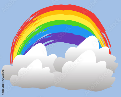 Cín barvy s papercut duha mrtvice přes bílé mraky vektorové ilustrace. Koncepce tvorby a designu. Umělecké studio, služba renovace domů a reklama na řemeslnou mistrovskou třídu