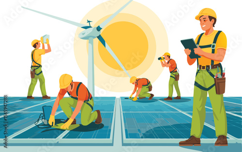 Drobní lidé dělají ovocný koktejl, vektorová plochá ilustrace. Letní čerstvý studený nápoj s bobulemi, pomerančem, lístky máty. Barman připravuje letní osvěžující chutný a zdravý nápoj.