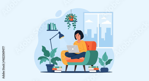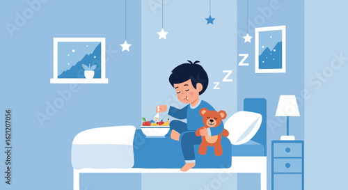 Unavená depresivní máma sedí v křesle u dětské postýlky, ploché vektorové ilustrace. Rodičovský stres. Poporodní nebo postnatální deprese.