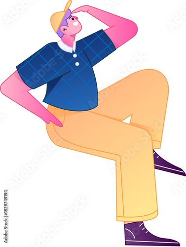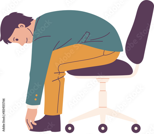 Unavený lékař sedí na židli vektorové ikony izolovaných na bílém pozadí