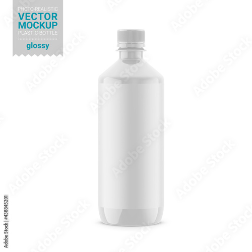 Toaletní čistič láhev balení maketa set. Vektorové realistické ilustrace bílé prázdné plastové láhve pro tekutý čisticí prostředek a láhev se štítkem izolovaným na průhledném pozadí.