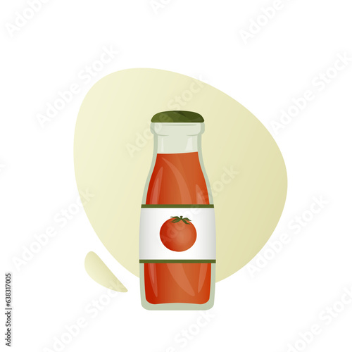 Rajčatový kečup láhev a keramická mísa deska vektorové ilustrace. Food omáčka balíček branding design. Lahodné koření pro rychlé občerstvení