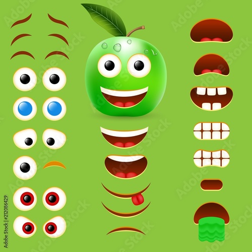 Tomato male emoji maker, tvůrce smajlíků. Kolekce vektorového designu částí těla emotikonu pro vaše vlastní skvělé vytváření emodži.