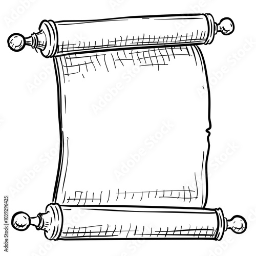 Svitek Tóry, svatá kniha náboženství judaismu. Starověké židovské Bible posvátné texty, Písmo svaté, vektorové vintage skica styl ilustrace izolovaných na bílém pozadí.