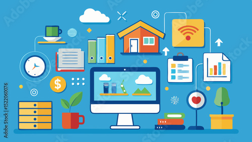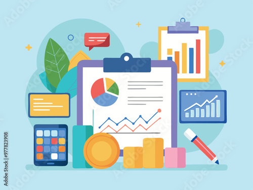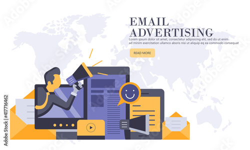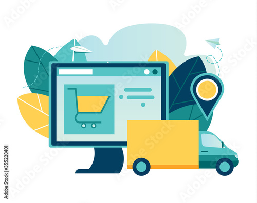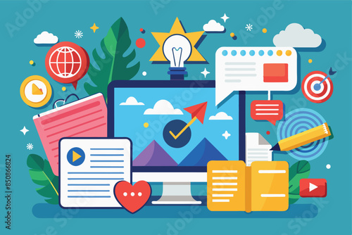 Plakát cestovní kanceláře. Vektorová plochá ilustrace. Globe, smartphone, letenky, taška s pasovými penězi, notebook s pinem na mapě světa na obrazovce, fotoaparát. Celosvětová cesta leteckým konceptem.