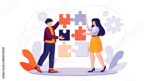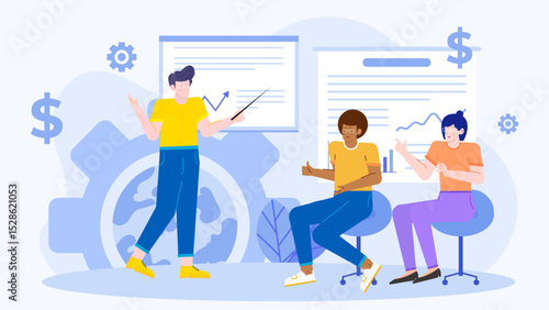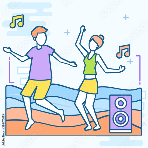 Vektorová ilustrace turistického páru, který jde na turistiku s batohy a mapou. Turističtí lidé koncept plochý styl designový prvek, ikona izolované na bílém pozadí.