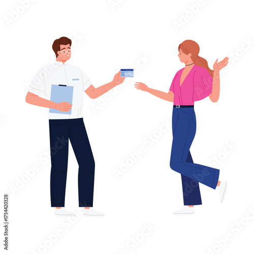 Turistické cestovní postavy turistika, fotografování, chůze a běh s lístky, pas, zavazadla, vektorový plochý izolovaný obrázek. Cestování, letní dovolená, dobrodružství, turistika trekking turistika.