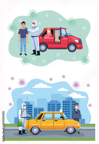 Vektorová ilustrace dopravního policisty regulujícího pohyb a jízdní policista hlídající ulici. Plochý designový prvek.