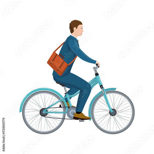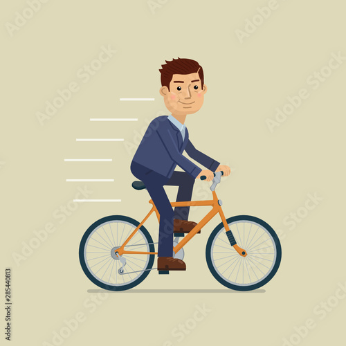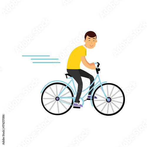 Vektorová ilustrace usmívajícího se muže se sportovní lahví s vodou na kole. Sportovec jede na kole. Školení mimo lidi koncept plochý styl designový prvek, ikona izolován na bílém pozadí.