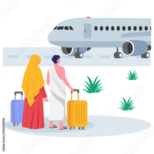 Cestovní pár zadní pohled, ploché vektorové ilustrace. muž a žena s cestovní taškou drželi se za ruce. Romantická dovolená, letní prázdniny, líbánky, cestování po světě.