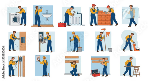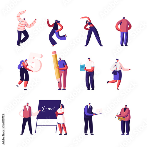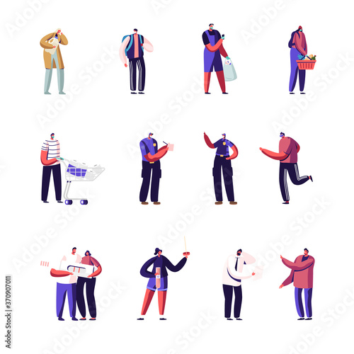 Cestování lidé ikona set, vektorové plochý styl design ilustrace izolovaných na bílém pozadí. Turisté chodí s cestovní taškou, batohem, fotografují fotoaparátem, mobilním telefonem, skákají, baví se atd.