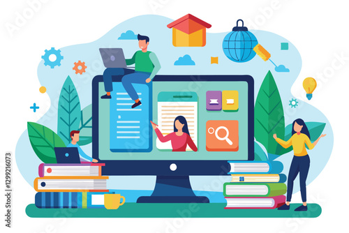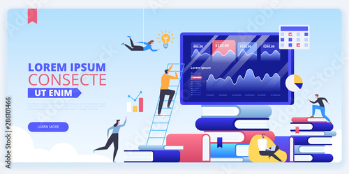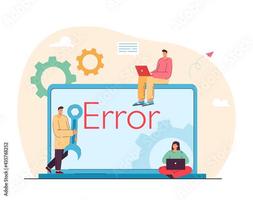Vektorová ilustrace velkého počítače s mapou světa na obrazovce a malými lidmi, kteří rezervují letenky online. Cestujte po světě, online platební koncept pro webový banner, webovou stránku atd.