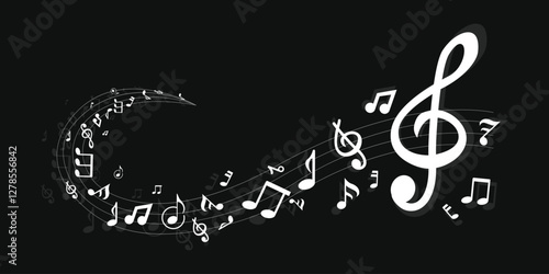 Vektor polygonální umělecký styl houslový klíč. Nízké poly drátěné pletivo s rozptýlenými částicemi a světelnými efekty na tmavě modrém pozadí. Šablona banneru hudebního plakátu s kopírovacím prostorem.