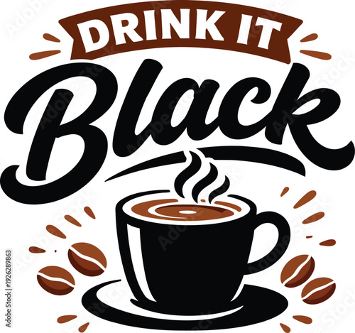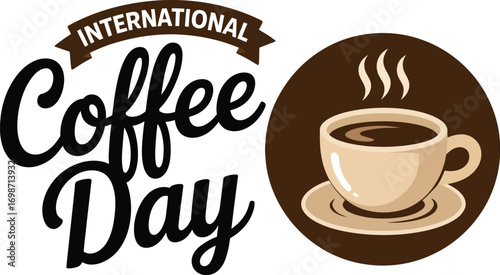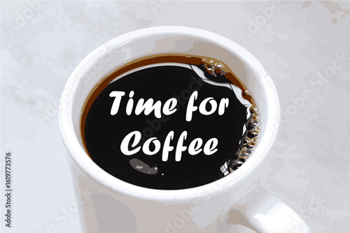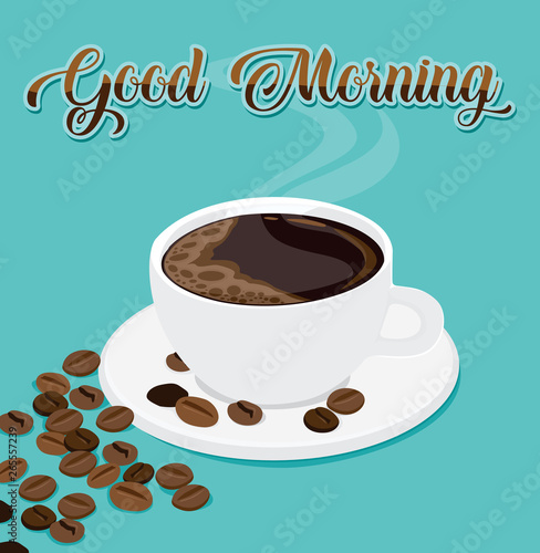 Vektor pohled shora šálek horké aromatické kávy s kávovými zrny a papírem řezané páry s nápisem kávy. Trendový designový prvek konceptu kávy pro banner, leták, plakát atd.