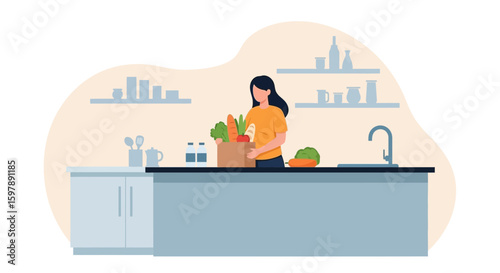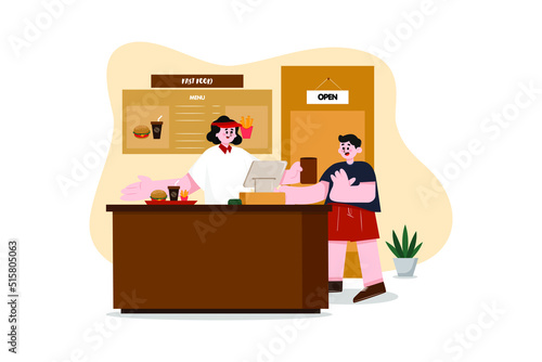 Snídaně formou bufetu vektorové ilustrace. Výlet do Egypta, hotel Restaurace služby concept plochý styl designový prvek.