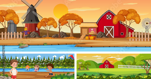 Vektorová sada plakátů pro dovolenou v Egyptě. Dovolená na pláži, cestování do saharské pouště a odpočinek v rekreačním bazénu s plochými designovými prvky.