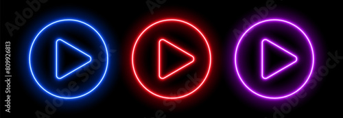 Tropical neon sociální sítě video play šablony set, vektorové ilustrace. Jungle sociální média rámy pro hudbu, film, live stream video obsahu.