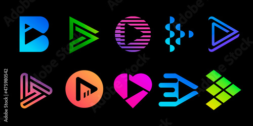 Tropical neon sociální sítě video play šablony set, vektorové ilustrace. Jungle sociální média rámy pro hudbu, film, live stream video obsahu.
