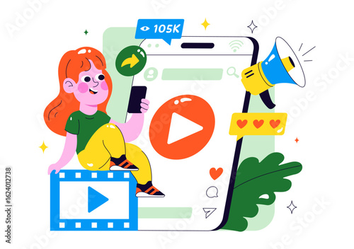 Televizní Kvízová show s hostitelem a dvěma účastníky, chytrý chlapec a dívka odpovídající na otázky, plochá vektorová ilustrace. Soutěžící hrající kvízovou herní show v televizi. Šťastná dívka vítězná soutěž.