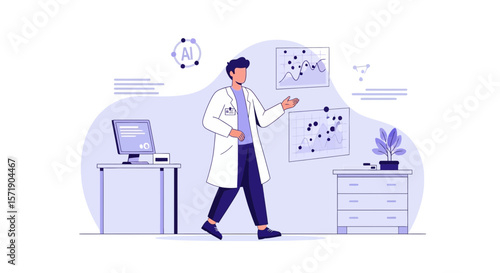 Mužské a ženské lékaři mluví k sobě navzájem, vektorový plochý styl designu ilustrace. Diskuse o lékařské diagnostice a léčbě, koncepci medicíny a zdravotní péče pro webový banner, webovou stránku atd