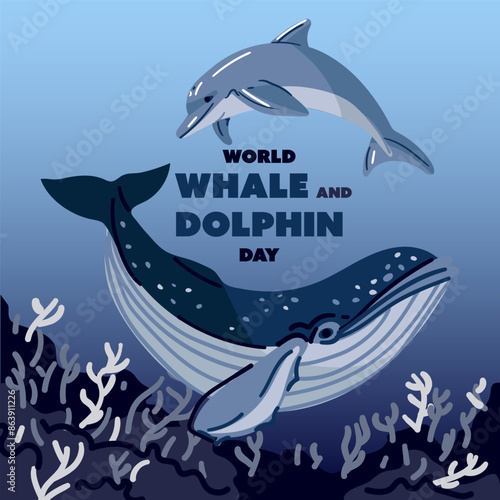 Dvě delfíni modrá silueta izolované na bílém pozadí. Vektorový ilustrační design ve stylu řezání papíru. Ryby a podmořský mořský život dvojí expozice.