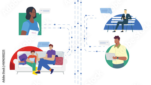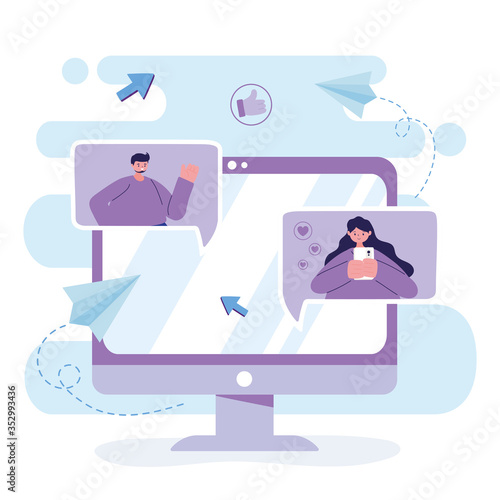 Dva přátelé si navzájem posílají zprávy. Lidé, kteří používají aplikace pro mobilní telefony messenger. Vektor web design šablony. Vstupní stránka webové stránky koncept ilustrace.