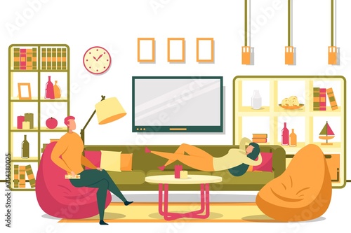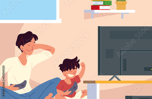 Děti hrají herní konzole na tv vektorové ilustrace. Počítačová místnost pro hráče. Dva mladí chlapci hráč při pohledu na televizní obrazovku baví herní činnost doma