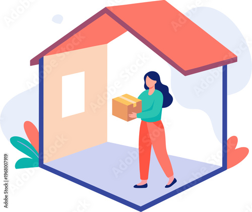 Dva stěhováci nesoucí pohovku do domu, ploché vektorové ilustrace. Přemístění. Stěhovací služba společnosti. Dodávka nábytku.