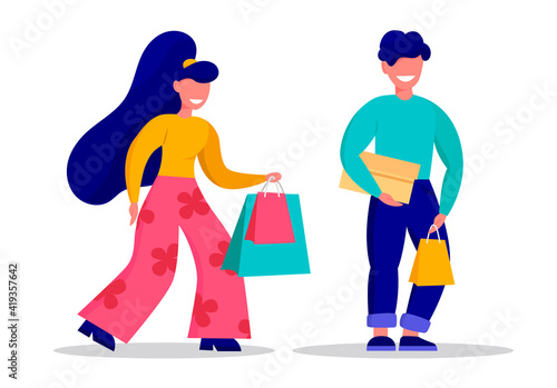 Dvě muslimské ženy nesoucí nákupní tašky a mluvící vektorové ikony izolovaných na bílém pozadí.