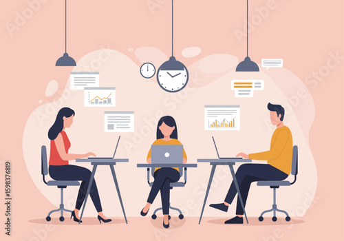 Dva rozhlasoví hostitelé ve sluchátkách mluví a nahrávají podcast ve studiu. Podcast a rádio rozhovor koncept vektorové ilustrace. Živé vysílání, audio vysílání, mikrofon.