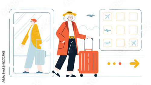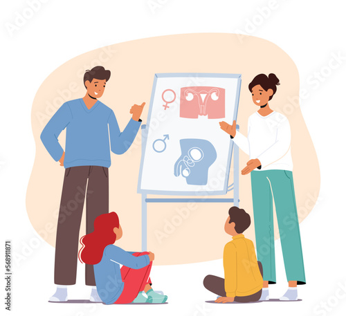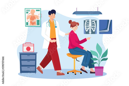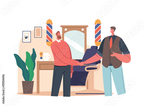 Vědeckovýzkumná laboratorní scéna. Dvě mužské postavy, vědci v bílých pláštích diskutující o zprávě o experimentu v chemické laboratoři, plochá vektorová ilustrace. Science lab interiér s baněk kádinky hořáku.