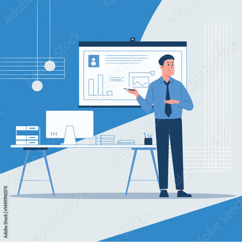Genetická vědecká laboratoř. Dva vědci mužské postavy v laboratorních pláštích studují geny, struktura dna, ploché vektorové ilustrace. Biotechnologie, genetické inženýrství, Věda, Medicína a technologie.
