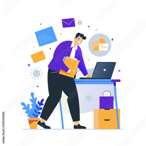 Typografické služby, vektorové ilustrace. Obrovská tiskárna s papírem, mikro znaky, ofsetovými tiskovými inkousty nebo barvami. Polygrafie, tiskárna, koncept tiskárny pro webový banner, webovou stránku atd.