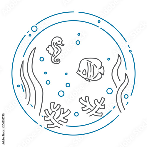 Vektor vrstvený papír řez styl podvodní mořské jeskyně s vodními rostlinami, exotické ryby, medúzy a korálový útes. Oceán nebo mořské dno krajiny. Krása konceptu podmořského světa ve stylu papírového umění.