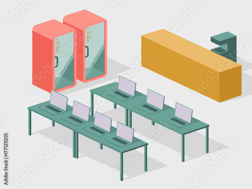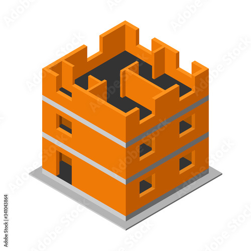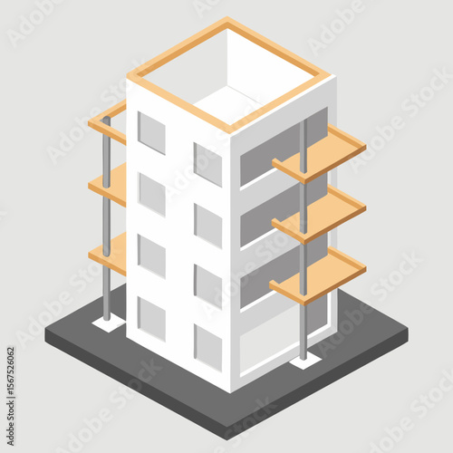 Nedokončený dům izometrický vektor. Ikona procesu budování práce. Staveniště izolovaných na bílém pozadí