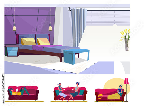 Nešťastná rodina ve znečištěném městě s odpadem a elektrárnou na pozadí. Koncepce znečištění životního prostředí. Průmyslová krajina. Vektor web design šablony. Vstupní stránka webové stránky ilustrace.