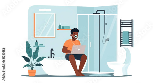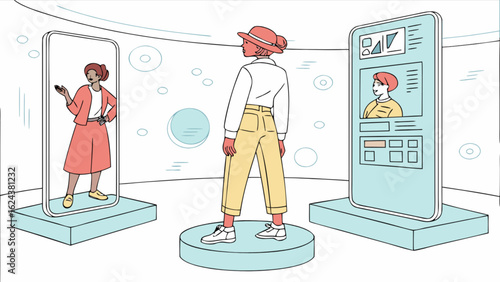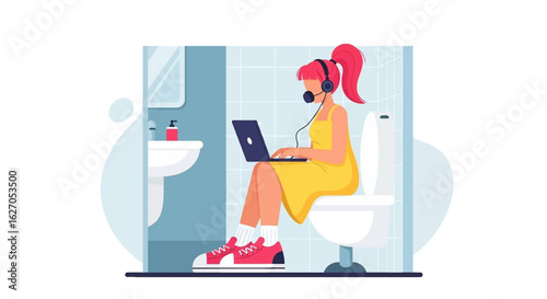 Mladá žena ležící na posteli sama drží smartphone a přemýšlí o svém příteli, ploché vektorové ilustrace. Nešťastná dívka a její kočka spí u nohou. Interiér ložnice. Osamělost, rozvod.