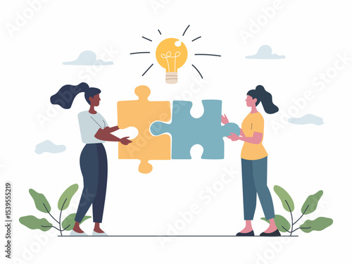 Jednorožec kůň a podnikatelé budování startup word a spojovací puzzle, ploché vektorové ilustrace. Strategie spuštění Unicorn.