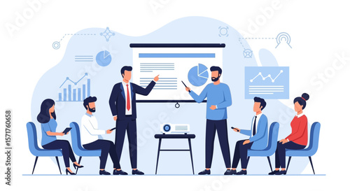 Jednorožec kůň vychází ze smartphonu a šťastní podnikatelé slaví úspěch, ploché vektorové ilustrace. Jednorožec společnost nebo spuštění, úspěšné podnikání.