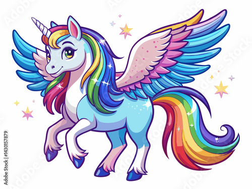 Unicorn vektorové ilustrace v kresleném stylu izolované na bílém pozadí
