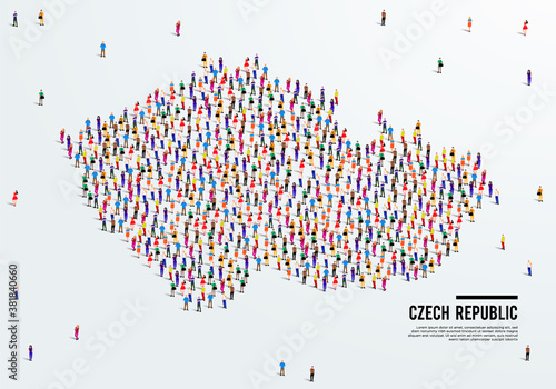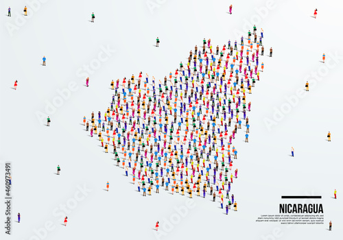 Mapa USA z mnoha lidí, velký tvar davu. Skupina lidí zůstává ve formování mapy země USA. Imigrace, volby, multikulturní rozmanitost populační koncept. Vektorové izometrické ilustrace.