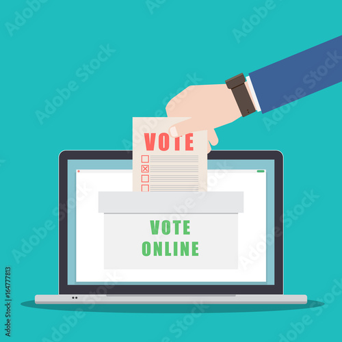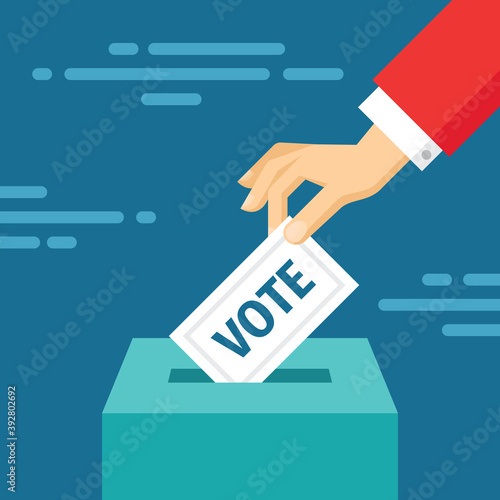 USA Prezidentské volby den koncept vektorové ilustrace. Ruční vkládání hlasovacího papíru do volební urny. Volební koncept v plochém stylu.