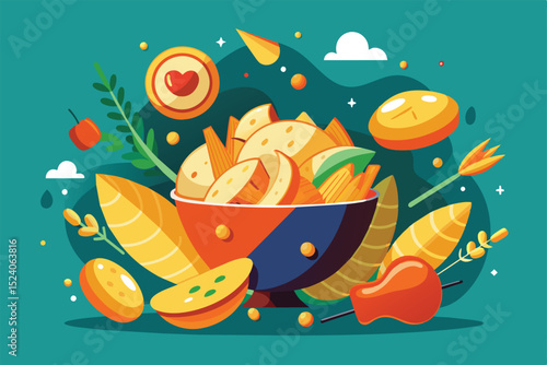 Užitečné sacharidy vektorové plochý styl designu ilustrace. Bageta, těstoviny, hnědá rýže, fazole, řepa, francouzský croissant. Složení potravin s vysokým obsahem sacharidů pro webový banner, webovou stránku atd.