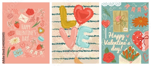 Vealentines day plakáty a karty, vektorová ilustrace. Ruka s balónky v lásce dopisy tvaru. 14 únor Valentýn design pozadí.