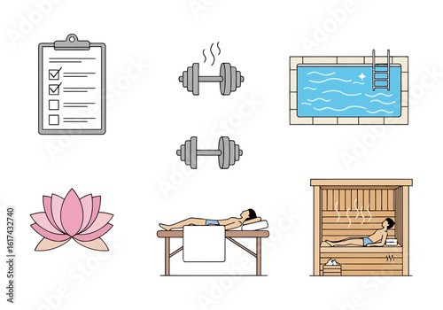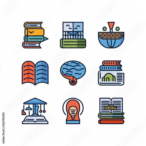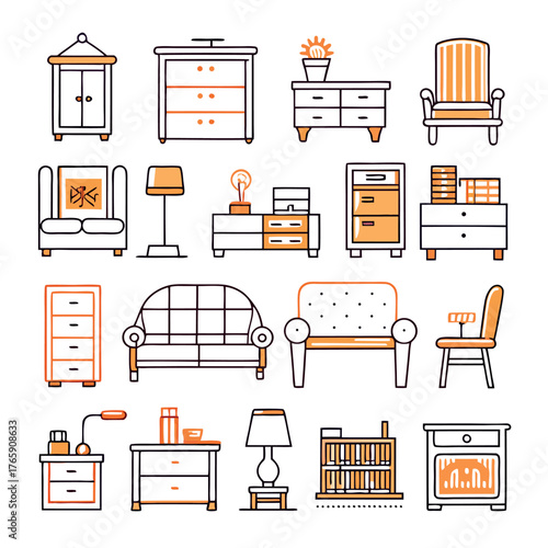 Vektorové 3D tiskárna plochá tenká čára ikona set. Keramické, lékařské, potravinářské a domácí 3D tiskové technologie koncepční designové prvky izolované na bílém pozadí.
