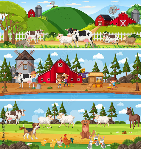 Vektorové bannery jízdy na koni. Jezdecký sport, Amatérské ježdění, americké rodeo, trénink a drezura, Parkur. Plochý design