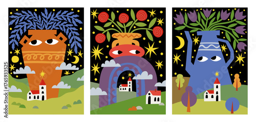 Vektorové bannery s pacienty, lékaři a nemocničními interiéry. Koncepce zdravotní péče a medicíny. Lidé v nemocnici. Lékařská prohlídka, operace. Ploché kreslené ilustrace.