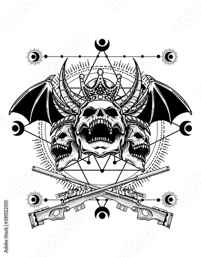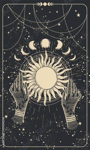 Vektorové zvířecí tetování nebo potisk trička. Medvěd v kombinaci s přírodou, růžicí kompasu, geometrickým vzorem, fázemi měsíce a boho prvky.